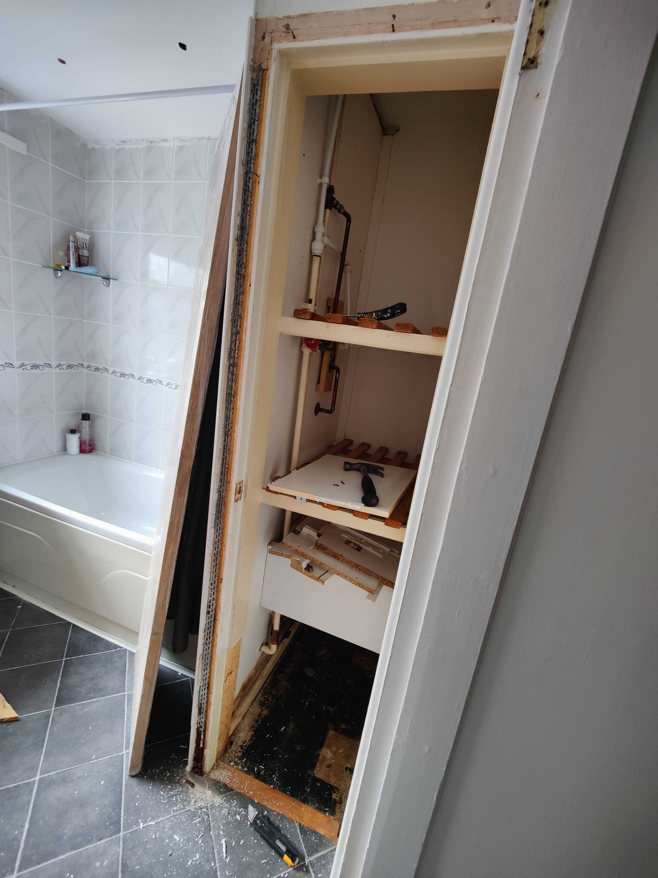 Customer wanted old airing space turning back into a full cupboard space.